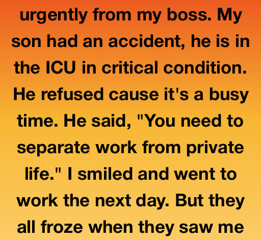 I asked for five urgent days off because my son was in the ICU in critical condition. My boss refused. He said, “You need to separate work from private life.” I smiled, slept a few hours, and showed up the next morning—pushing my son’s hospital bed through the lobby. IVs. Monitors. A nurse trailing me, startled but silent. The security guard tried to block me, and I told him, “Call Mr. Manson. He’ll want to see this.”