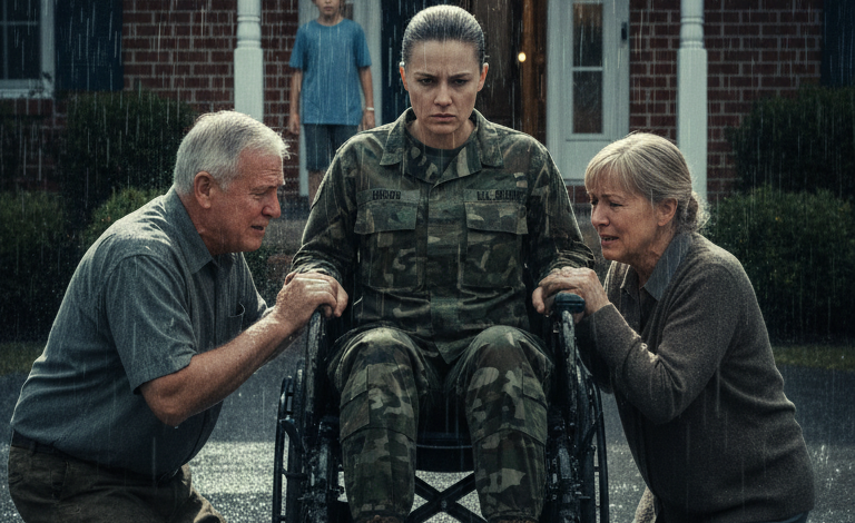I returned home in a wheelchair, and my dad blocked the door. “We don’t run a nursing home,” he spat. “Go to the VA.” My sister smirked, “I need your room for my shoe collection.” My little brother ran out with a blanket, crying, “You can stay with me!” They didn’t know I had used my deployment bonus to buy their mortgage. When the bank called…