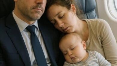 EXHAUSTED MOM AND HER BABY FELL ASLEEP ON A STRANGER’S SHOULDER MID-FLIGHT, WHEN SHE WOKE UP, HER LIFE CHANGED FOREVER!