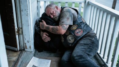 I panicked when I found a biker sleeping on my porch until I saw the note clutched in his bloodied…
