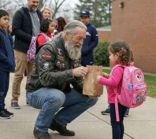 Mrs. Davidson folded her hands on her desk. “Mrs. Torres, for the past three weeks, your daughter has been giving her lunch to a man who waits outside our school every morning. A man on a motorcycle. A man who, frankly, looks extremely dangerous.”