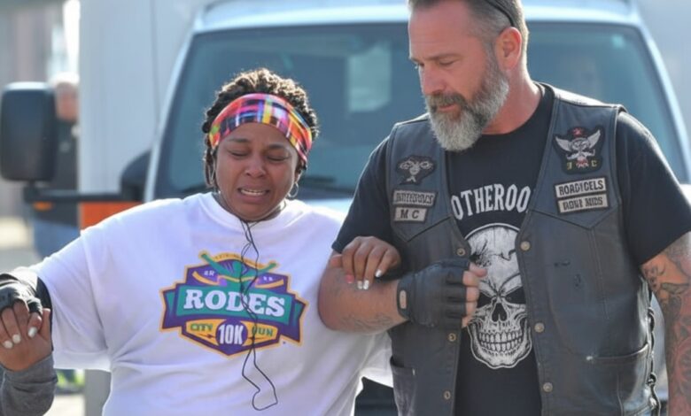 The race announcer’s voice came over the speakers: “Ladies and gentlemen, we have a very special runner approaching the finish line. She’s running in memory of her son, Marcus Thompson, and she’s being helped by a guardian angel on a Harley.”